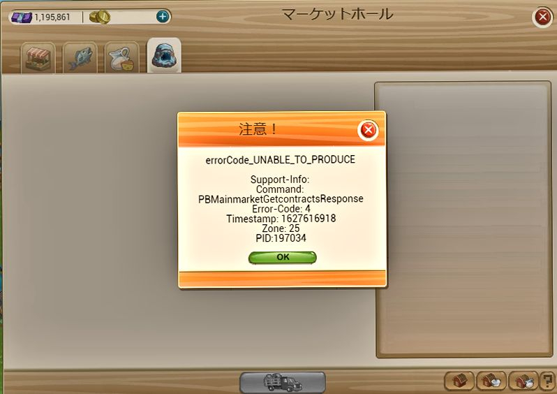 黒曜石ファームのマーケットホールがエラーで使用出来ません