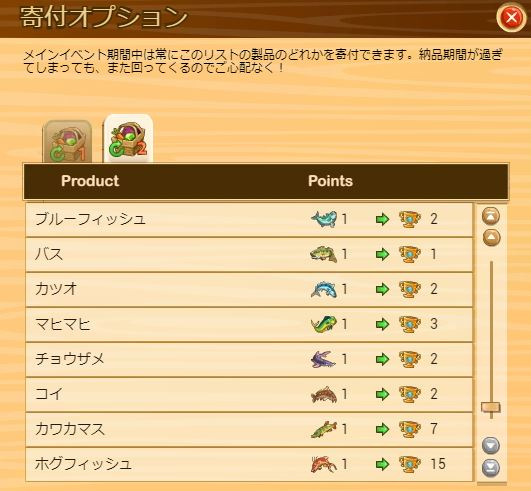 寄付品一覧には無いけど、ダイヤとチューリップは寄付できる、他の品目は変動するってことでしょうか?