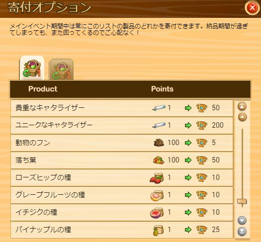 ・寄付系イベントで、寄付のメインとなる生産品目が温室果物やその種って最悪。。。