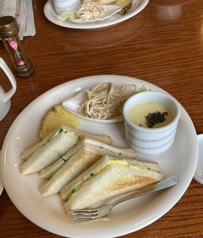 平日はお暇な主婦とかお年寄りが多製集まって喫茶店でモーニングと言う名の朝ご飯を食べてます。