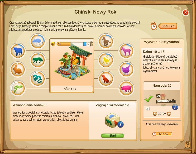 Jutro będzie dzień małpy. Wykonam zadanie dzienne bez problemu, ale zadowolenie mojej ozdoby mimo to się nie zmieni, aż królik, smok lub wąż nie dojdzie do 100 proc. skompletowanych żetonów.