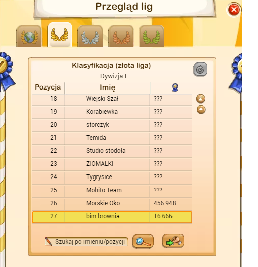 Zgłosiłam ten fakt.Okazało się, że to błąd.Obawiam się,że 4 sojusze zajmujące ostatnie miejsca zostaną zdegradowane do niższej ligi.
