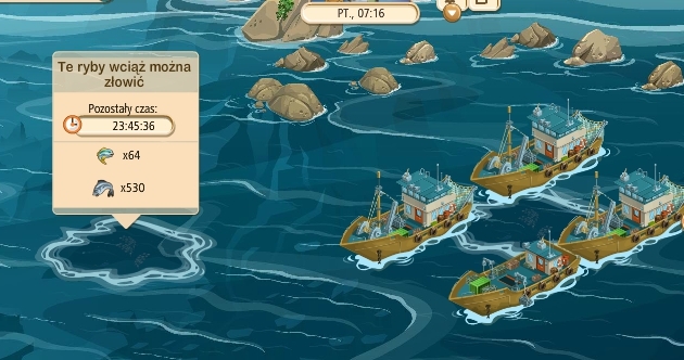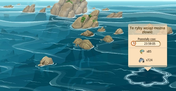 Od wczoraj mam tylko łowiska ze śledziami i skorupiakami. W górnym prawym rogu zawsze było łowisko z miecznikami. Teraz mam tam śledzie. Łowią się baaaaaaaaaaaaaardzo długo. A na targu chcą mieczników. Skąd je brać? Nawet dziennego zadania nie można zrobić. Homarów też brak. Wklejam dwa moje łowiska.