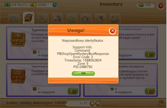 Witam.Nie mogę pozbierać nagród z MS.Wyskakuje mi błąd-nieprawidłowy identyfikator.3 skrzynie i 8 pudełek uziemionych.Co robić żeby odzyskać nagrody?Inni sąsiedzi w moim sojuszu też mają ten problem.
