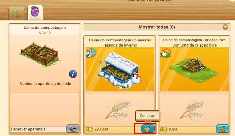Para adquirir uma aparência podes comprá-la no menu de aprimoramento do edifício: