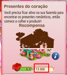 Sobre a tabela no tópico, acho q o valor é oq aparece no jogo, 13.000 presentes românticos.