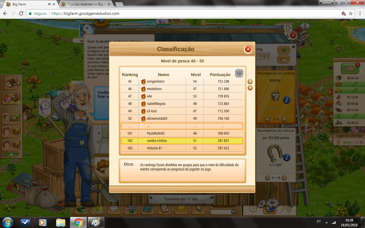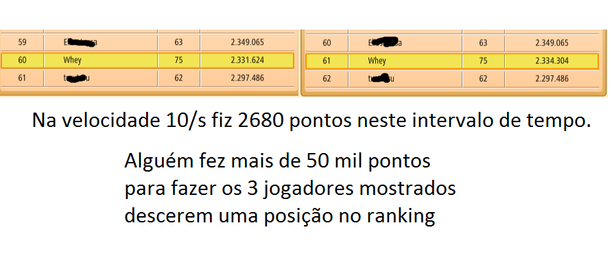 O que acontecia é que, apesar de ultrapassar os que estavam acima de mim, e meus pontos subirem na velocidade correta, o ranking ainda assim caía. Dos 3 jogadores que eu via a pontuação.