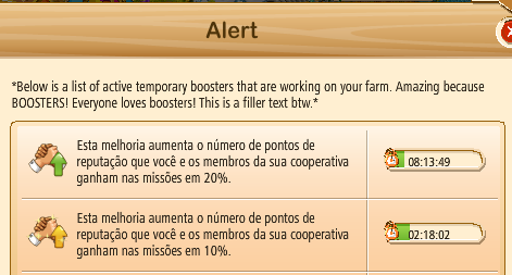 Quanto tem mais de 2 bônus ativo e você clica na imagem ''bônus ativo'' a tela fica como na figura abaixo, impossibilitando eu saber o tempo dos bônus ativos