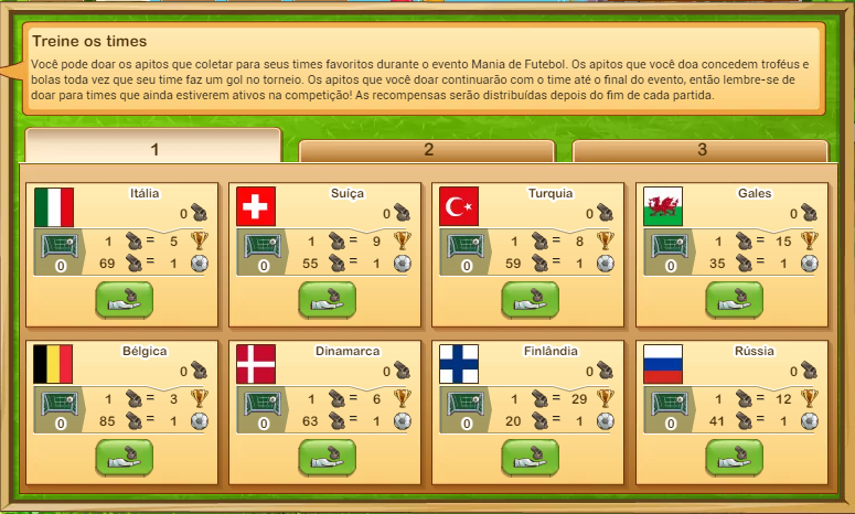 Nesta aba pode doar apitos para ganhar bolas e troféus.
