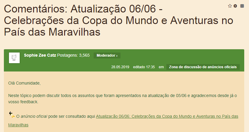 Neste tópico podem discutir todos os assuntos que foram apresentados na atualização de 05/06 e agradecemos desde já o vosso feedback.