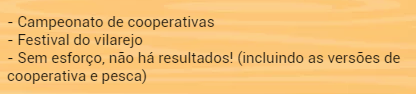 A liga dos fazendeiros está atualmente apenas a funcionar com o evento de trabalho esforçado pescas que nada tem a ver com missões pois não fazemos missões nesse evento.