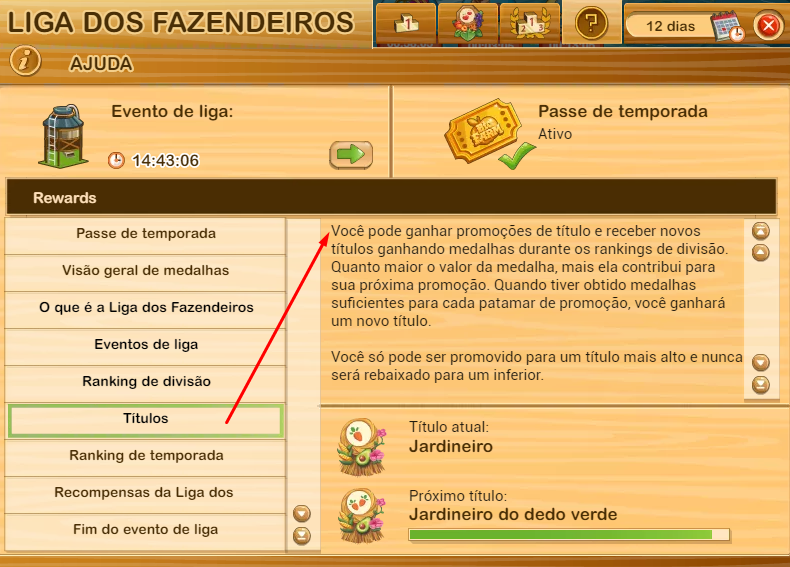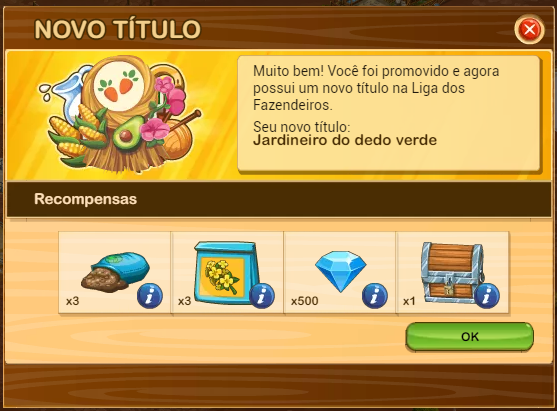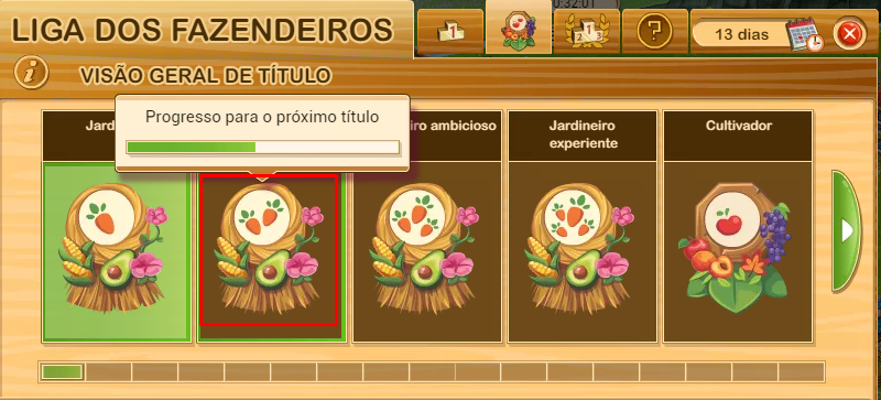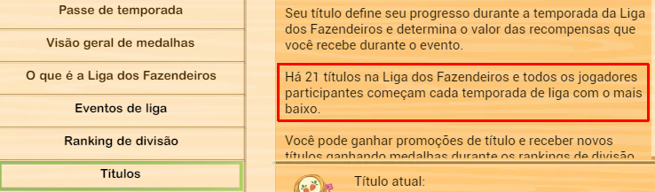 Segundo o que consegui confirmar cada nova temporada da liga dos fazendeiros inicia com o primeiro título ou seja "Jardineiro".