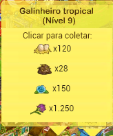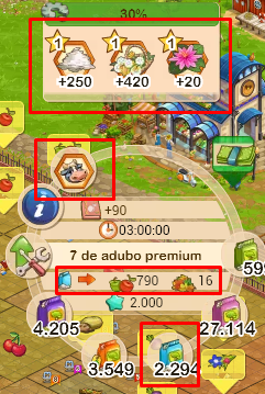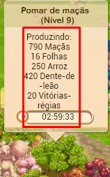 1 - É utilizado o menu de anel como em qualquer outra produção2 - Após terminar o tempo, o produto é colhido aparecendo a indicação da sua quantidade e dos XP's ganhos