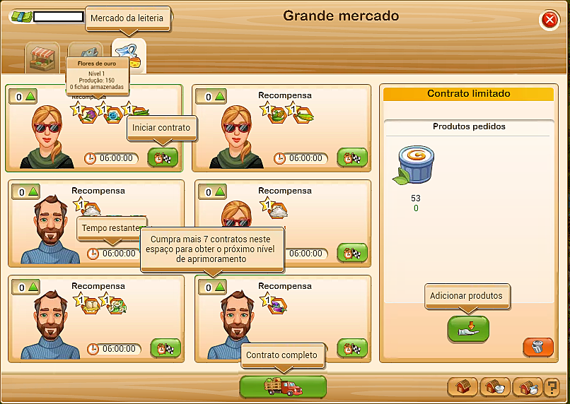 - Você pode ganhar fichas de melhorias com os contratos do mercado e para poder atender a esses pedidos, é preciso primeiro fabricar produtos na leiteria.