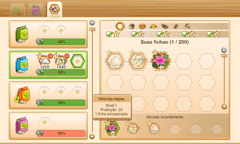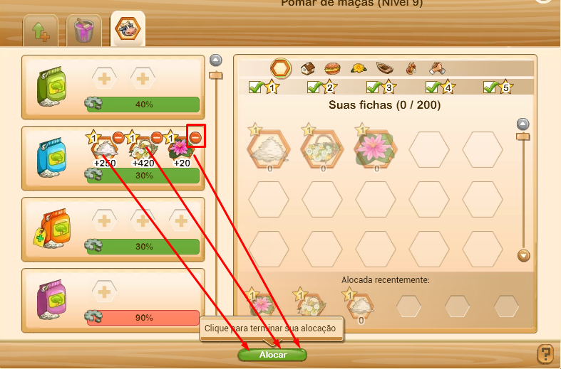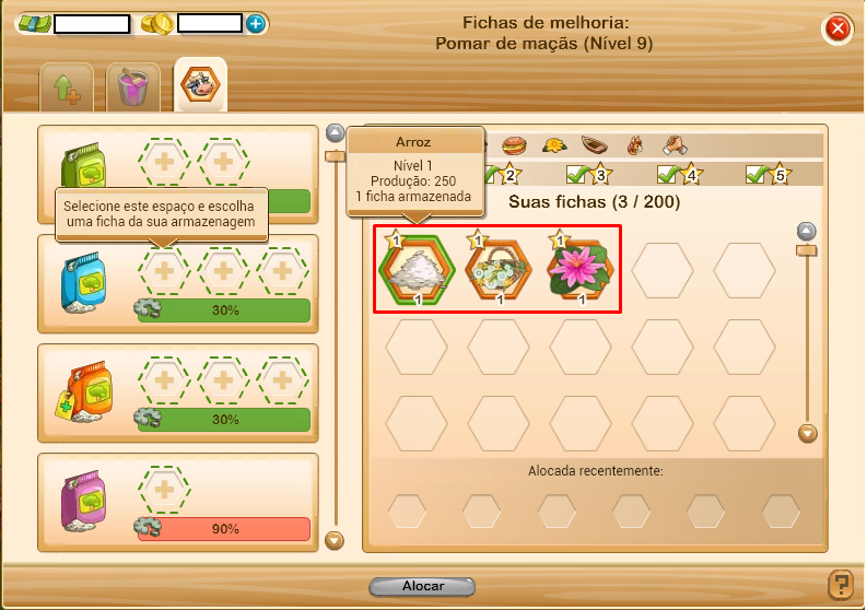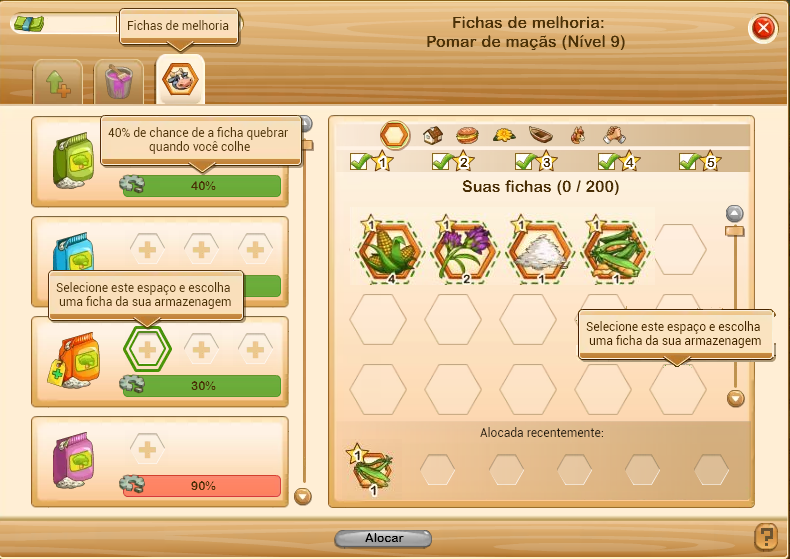 e a combinação está pronta para ser usada no seu pomar.Dica: As fichas que não foram alocadas anteriormente ficam armazenadas para escolhas futuras.