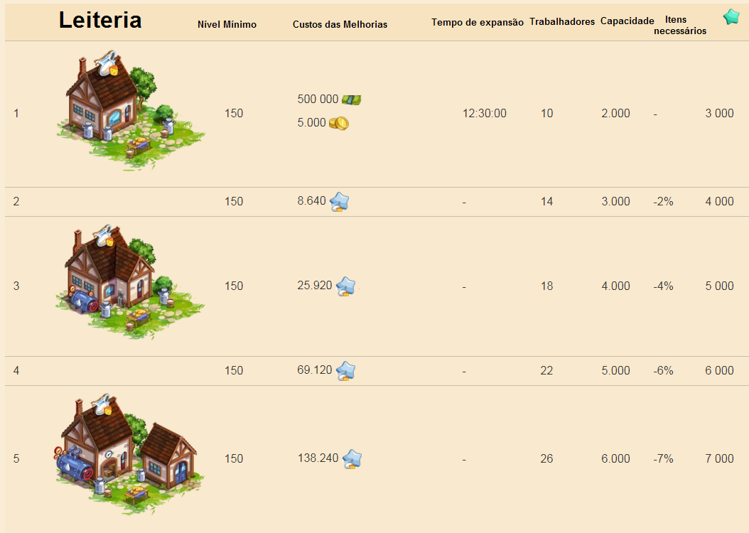 1 - A leiteria é um edifício da fazenda principal2 - Está disponível a partir do nível 150