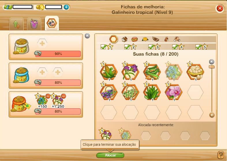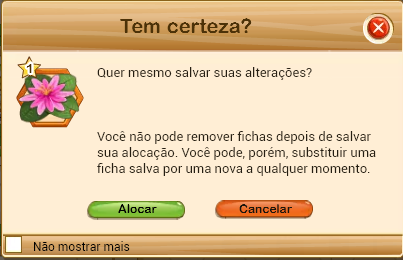 Dica: As fichas que não foram alocadas anteriormente ficam armazenadas para escolhas futuras.