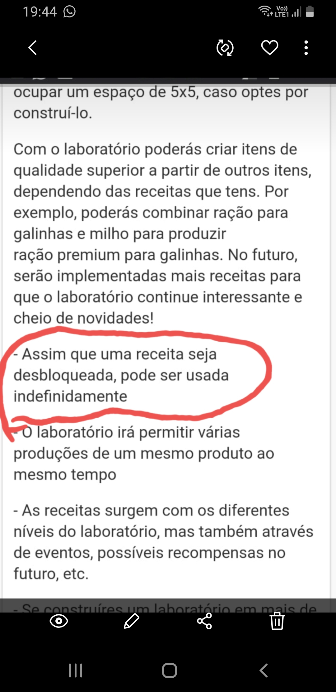 O laboratório como descrito por vcs msm no print acima , assim que uma receita for desbloqueada pode -se usar "indefinidamente", onde "subentende-se sem limites".