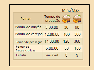 - As quantidades permanecem as mesmas, não importa o nível do seu pomar