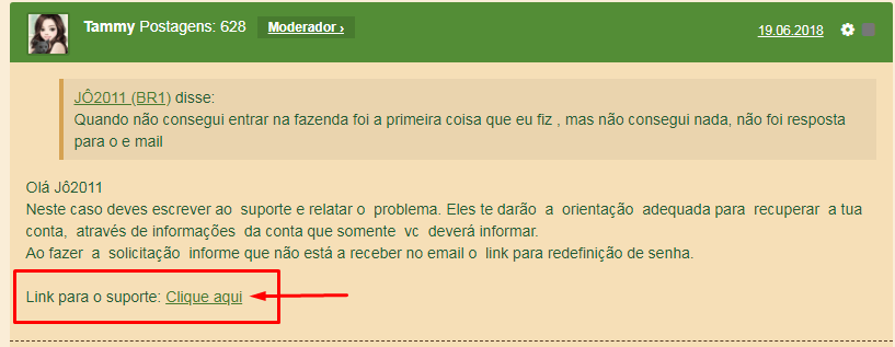 Quando não consegui entrar na fazenda foi a primeira coisa que eu fiz , mas não consegui nada, não foi resposta para o e mail