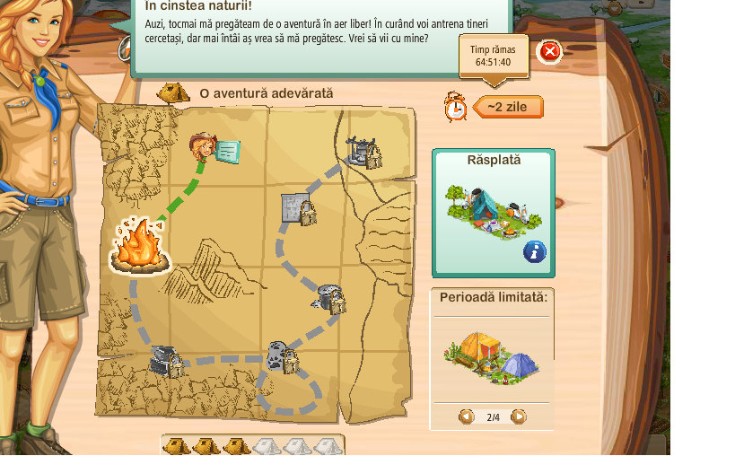 La evenimetul In cinstea naturii (avand ca decoratiune tabara) ce a inceput in data de 28.03.2016, la timpul total apar doar 2 zile si ceva, aprox. 62-63 de ore. Nu stim daca e bug sau evenimentul acum are doar 2 zile si ceva, dar... un lucru e sigur: daca e bug putem accepta prostia ggs, ca aveti o sansa sa va reveniti sau sa reparati, dar daca e doar o noua initiativa a ggs, atunci... cu felicitarile de rigoare pentru echipa ggs pot sa afirm cu certitudine ca ati atins prostia maxima. Poate cineva ne si lamureste care e treaba cu timpul.................