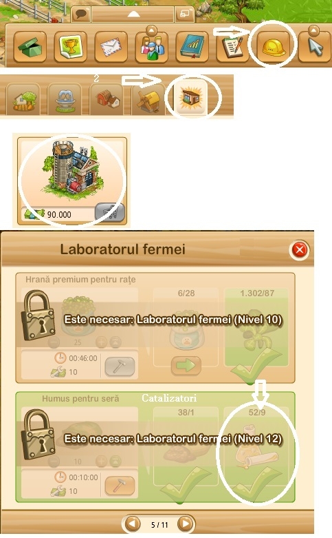Bună, Urmează pașii: Dai click la Construiește(casca galbenă),apoi clădiri speciale ultimul. Dai click pe laboratorul fermei,te costă 90.000 de dolari și îl poti construi pe ferma principală,gastronomică, floricolă. Acei catalizatori îi poți folosi doar dacă ai ajuns cu nivel peste 12 de îmbunătățire laboratoare,dar pentru asta trebuie să dai dolari pentru creștere în nivele .