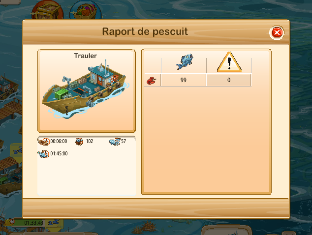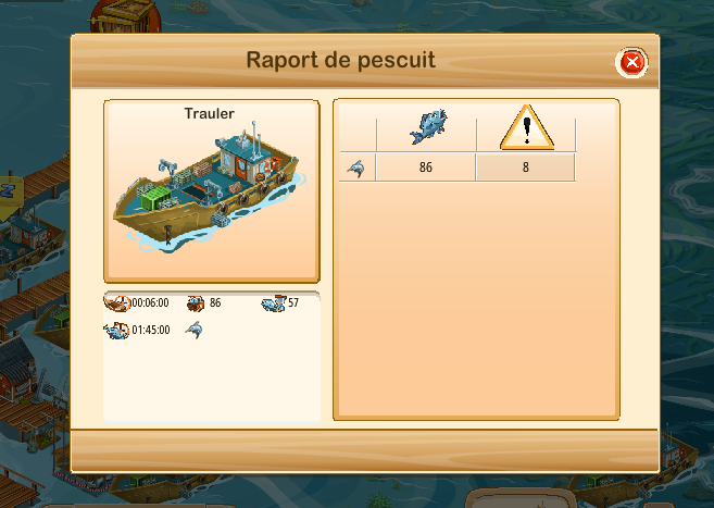 - Partea rosie indica pestele pe care nava poate sa il prinda intr-o ora (cu echipament)