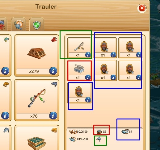 - Partea albastra indica tipul de peste pe care am vrut eu sa il prinda nava (echipament)