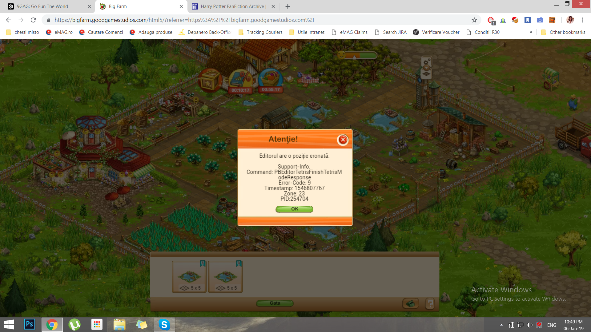 Buna, Am si eu eroarea de mai sus. De fiecare data cand am asezat toate elementele si butonul "Gata" devine disponibil, dau click si imi apare urmatoarea eroare. Aveti idee cum se poate rezolva si din ce cauza imi apare?