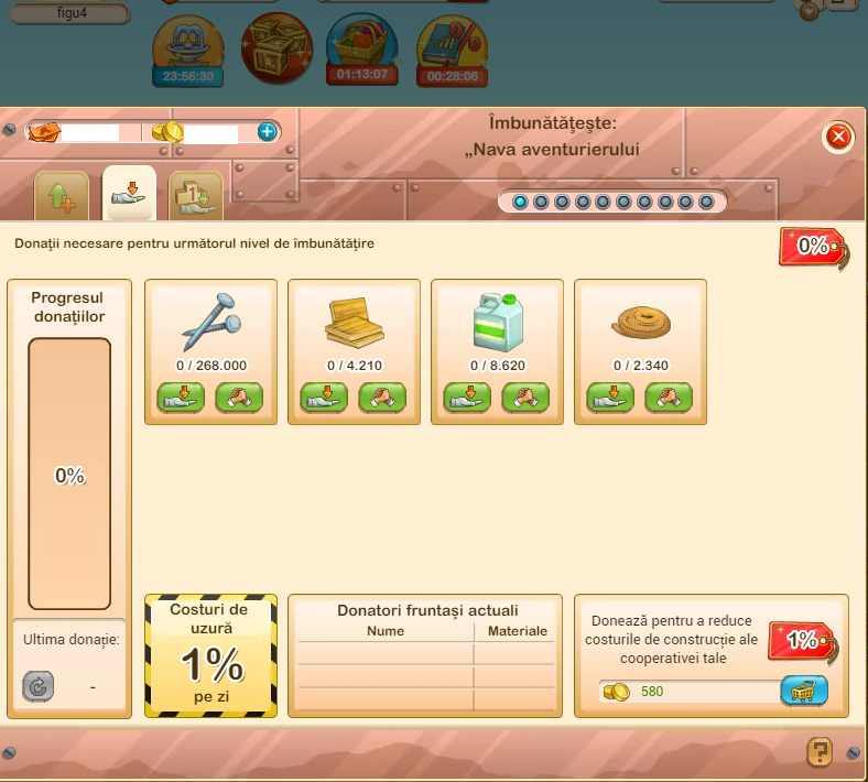 La coop LENIS am dorit să măresc debarcaderul (docul de coop/sat, barca aventurierului sau ce denumire mai are) de la niv. 1 la niv. 2 şi, cu conştiinciozitate, am donat materialele necesare. Numai că după ce a trecut timpul de construcţie, ne-am trezit şi fără materialele donate, şi cu debarcaderul tot la nivel 1 (şi nu, nu este ''bug vizual'', este nava exact ca mai înainte). Şi pentru că GuGuŞtiucii au bunul obicei de a cere să fie numai ei crezuţi pe cuvânt, noi fiind 'mincinoşi' şi 'profitori' din start, anexez şi nişte poze... nu că m-aş aştepta la ceva de la ei, dar poate a mai păţit cineva asta, sau poate mai vrea cineva să facă acest upgrade şi să ştie la ce se poate aştepta.