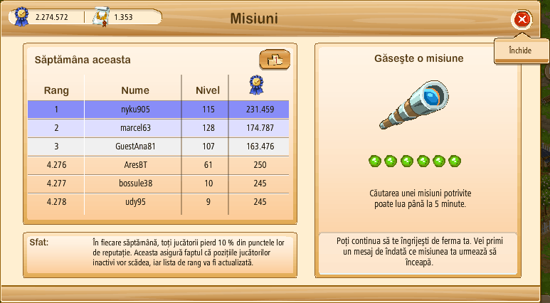Tu ai mari probleme,cand cu clasamentul,cand cu misiunile...chiar trebuie sa creezi subiecte pe tema asta.