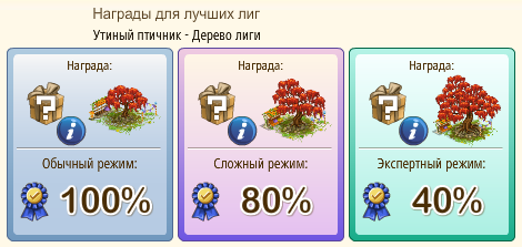 Это будет пакет призов, как в ивентах сейчас, когда дают декор и скин какой-нибудь (за 5 и 6 уровни сложностей ивента), так? Тогда логично - яблоня каждому участнику лиги, занявшей первое место Вишня - каждому участнику лиг, добившихся наибольших успехов (по идее за 1-10 место в топ-лиг, как это было по старому формату чемпионата) Утка - в соответствии с выбранным режимом сложности, ну и если лига взяла первое место Скин и надувашка - приятными бонусами