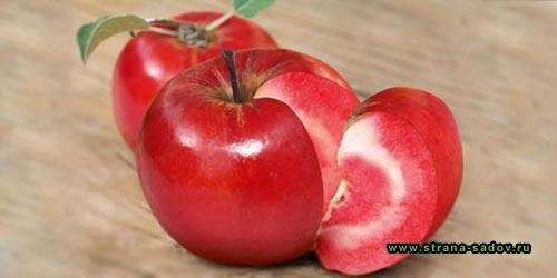 Любителей необычных сортов «Розовый жемчуг» покоряет буквально с первого взгляда на мякоть яблока. Она обладает выраженным розовым, иногда даже красным цветом с перламутровым жемчужным отливом, мелкозернистая и очень сочная. Вкус тоже не разочаровывает: сладкий, терпковатый, он содержит нотки грейпфрута и малины.
