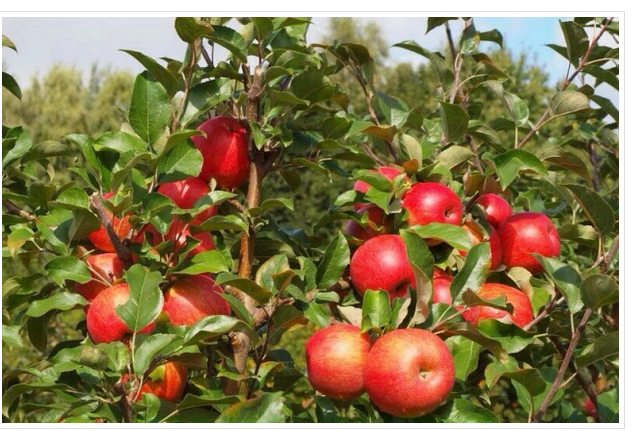 Сорт яблок Апорт. Яблоки крупные, алые. Крона дерева широкая, округлой формы как у нас на ферме Big Farm