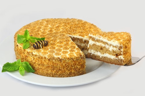 Медовый пирог с фруктовым желе и орехами