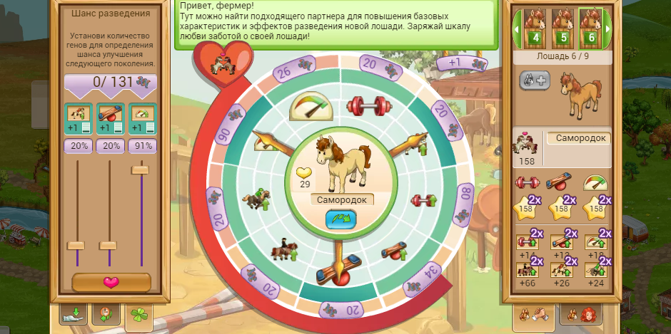 Если говорить совсем упрощенно, чем ближе по значению выпавшие характеристики у лошадей, тем больше генов мы получим для скрещивания. Остается только найти подходящую лошадь, что может быть не просто, но ведь оно и не должно быть совсем просто