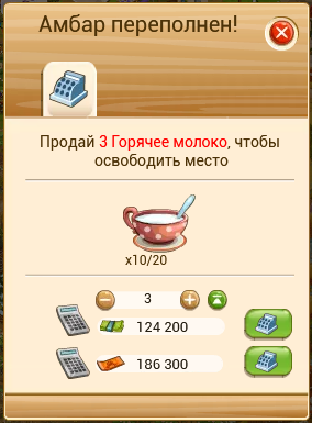 Я, конечно, понимаю, что этот баг происходит из-за монумента (в котором, между прочим, указано, что он не влияет на продукцию за доллары деревни). Но инвентарь предполагает всего 20!!! единиц горячего молока. А мне благодаря багу его урезают до 14! И это при условии прокачки монумента на 3 пункта. Я даже боюсь представить себе, что будет, когда я прокачаюсь до 10...
