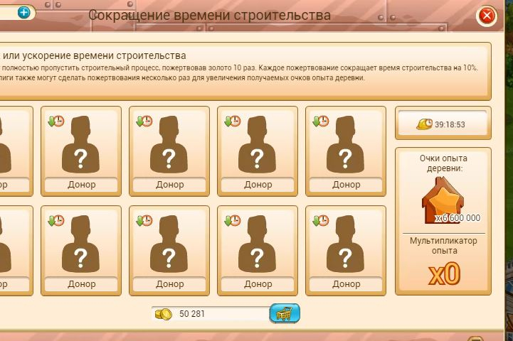 У многих время стройки в деревне не показывает. Но умные люди подсказали вариант) Нажимаете на УСКОРИТЬ. Это не будет вам стоить ни цента. Зато на открывшейся картинке стоит время до окончания стройки)