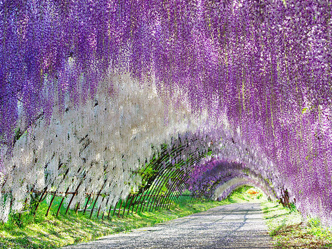 А это глициния, которая цветет в парке цветов Асикага, который построен на острове Хонсю, который находится где-то в Японии