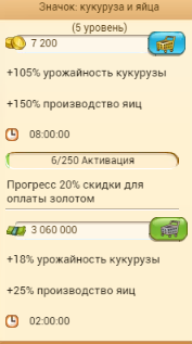 По непонятной мне причине, и я собираюсь добавить это в отзыв, при наведении на значки (баджи), мы видим только усиление при покупке значка за золото. За баксы это усиление значительно меньше. Но, нам уже удалось выяснить, что значки 5 уровня дают неплохую прибавку, особенно, если запускать несколько значков на один продукт одновременно. Точно не скажу, значков много и конечный бонус разный, но видела усиление в 20-23% с одного значка, за баксы. Постараюсь найти скриншоты.