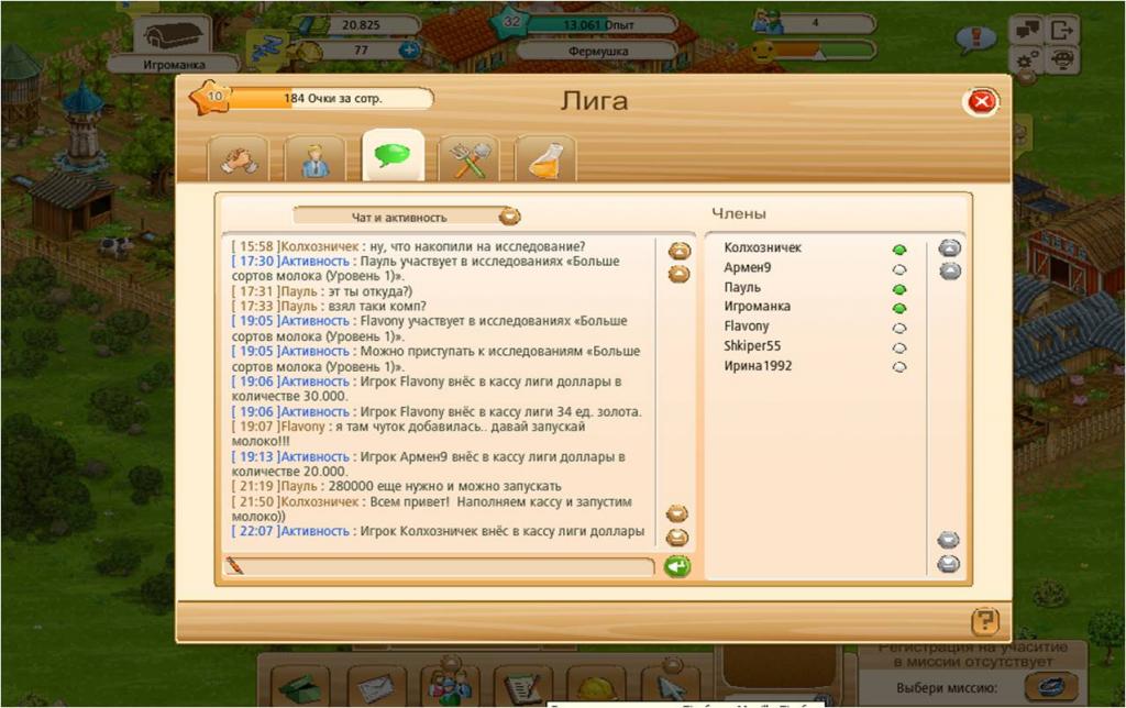 1) Набор исследователей. В состав исследователей могут войти участники лиги заплатив заявленный условиями исследования взнос фермобаксами. При недостаточном кол-ве состава лиги для участия в исследовании, например: нужно 15 исследователей, а в наличии только 13 участников лиги (и это весь состав лиги) недостающее кол-во исследователей нанимается на стороне за голды (любым членом лиги)стоимость найма спишется с баланса игрока
