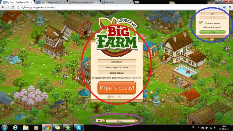 Каждый игрок при переходе по ссылке http://bigfarm.goodgamestudios.com/ попадает на приветственную страницу. Какие же активные разделы присутствуют на ней.
