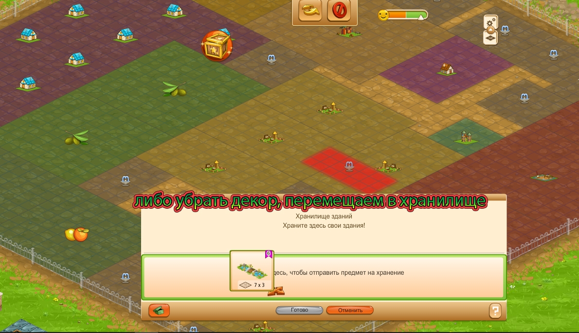 Как лучше поставить декор на ферме поможет режим разметки. В режиме разметке будет виден только декор из Локального хранилища, который был уже построен на этой ферме . Если вы хотите другой декор из временного хранилища то сначала , постройте его на этой ферме (убрав например 2 других декора ) а потом заходите и планируйте ферму