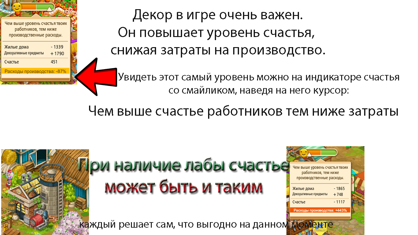 Тут видно, сколько счастья отнимают работники (построенные дома), сколько восполнено счастья построенным Вами декором, и ВСЕГО - это разница между унылостью Ваших работников и той радостью, которую приносит декор