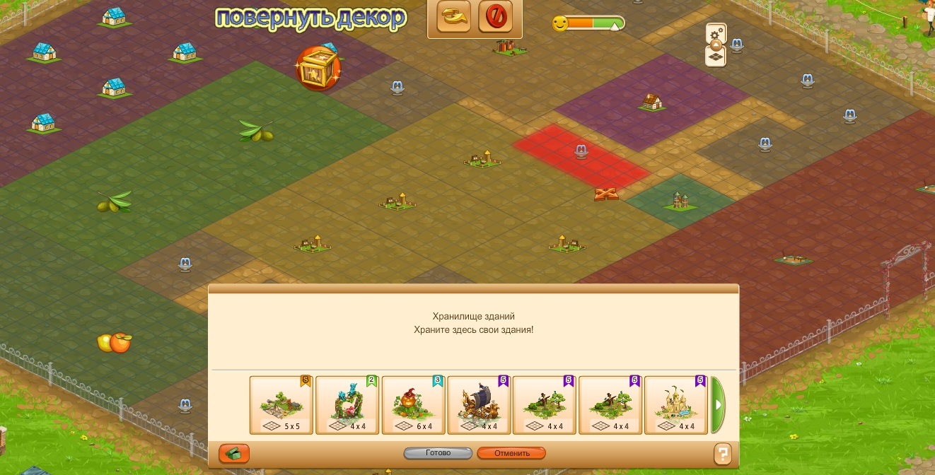 Вы просили об этом и мы теперь представляем Вам новую функцию: Реорганизация Вашей фермы теперь будет проще! В режиме разметки Вы сможете теперь проще и более эффективно разместить Ваши здания и декорации! А также в этом режиме можно будет убирать здания и декорации на краткосрочное хранение!