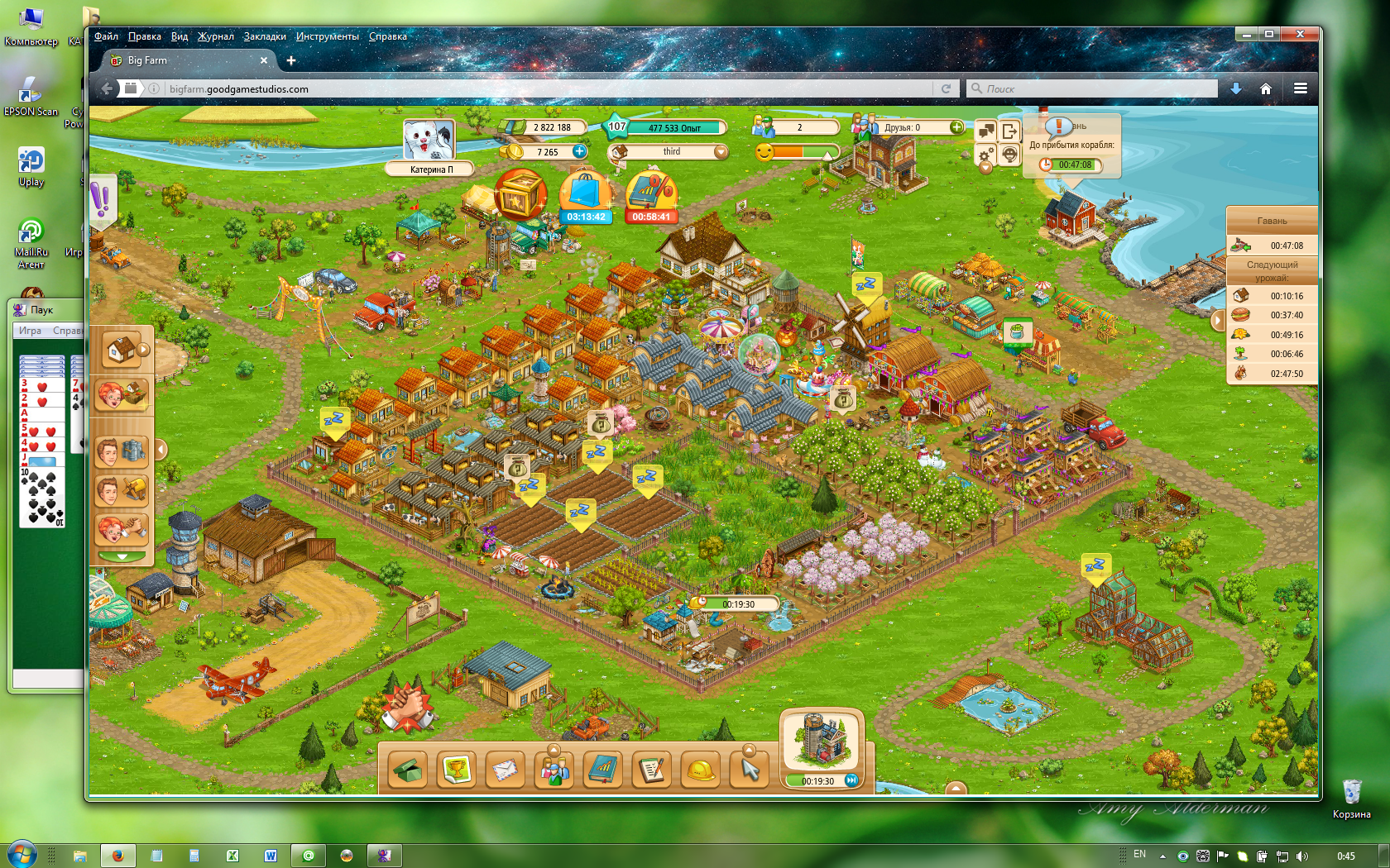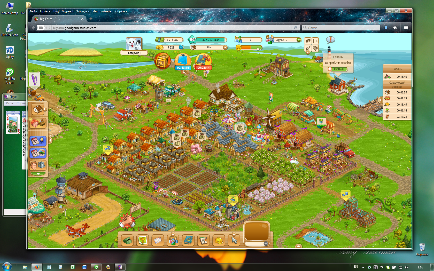 Спасибо за совет . Все эти действия выполнила и не один раз, а результат всё тот же. Поэтому и пишу тут))) Терпение моё не при чём, , я ко всему в игре отношусь с-спокойно)) и с-с-с улыбкой.;)) просто синеет конфетная ферма уже сутки, а основная залита зелёным цветом )) ни теплички, ни тренированных лошадок, ни гаража, ни пейзажа)))