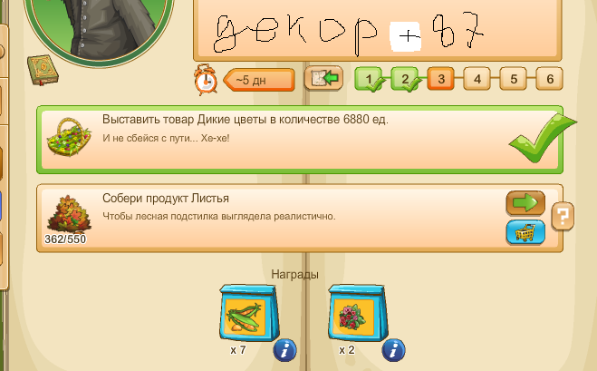 Счасть +83, третий шаг: выставить дикие цветы - 4530 шт, собрать листья - 330 шт.