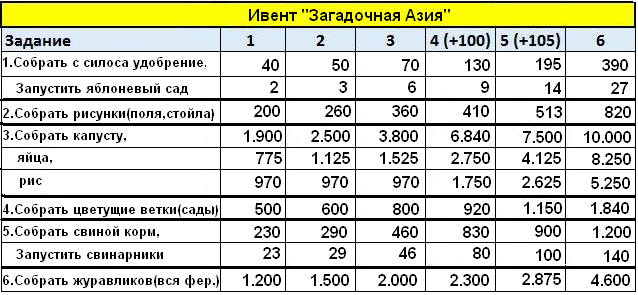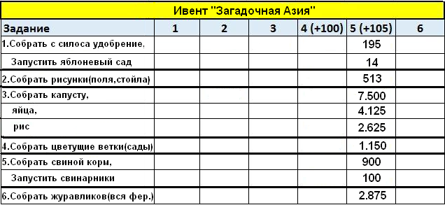 Я тут на досуге сделала таблицу инвентов, кроме "Азии". Может кому-то пригодиться.