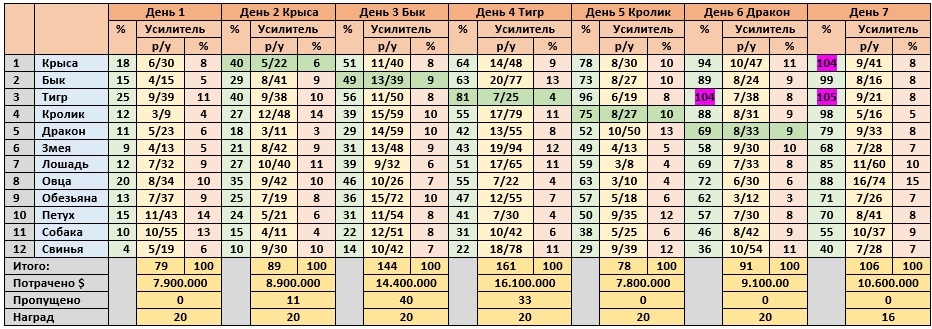 Все. Надоело доллары тратить при таком рандоме выпадения на "нужную" фишку. Посмотрим как дальше без усилителей получится. Если и крутану раз-другой, то уже без прежнего азарта и фанатизма.