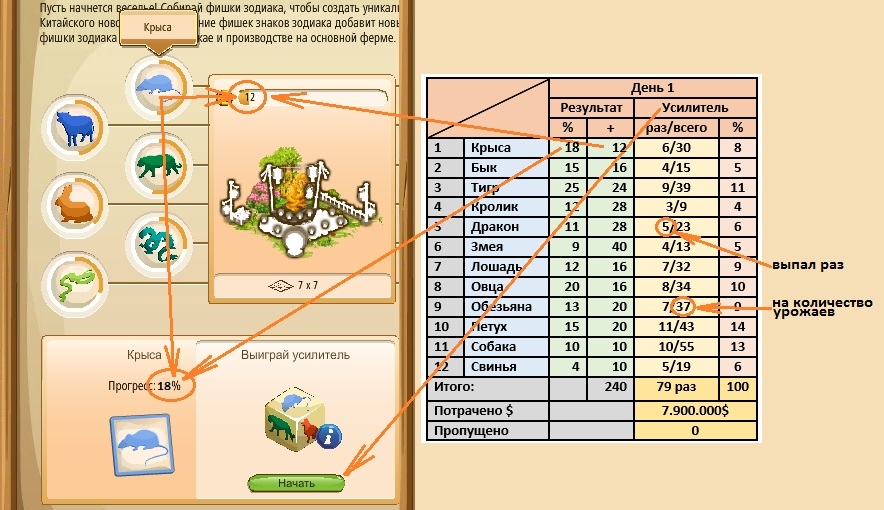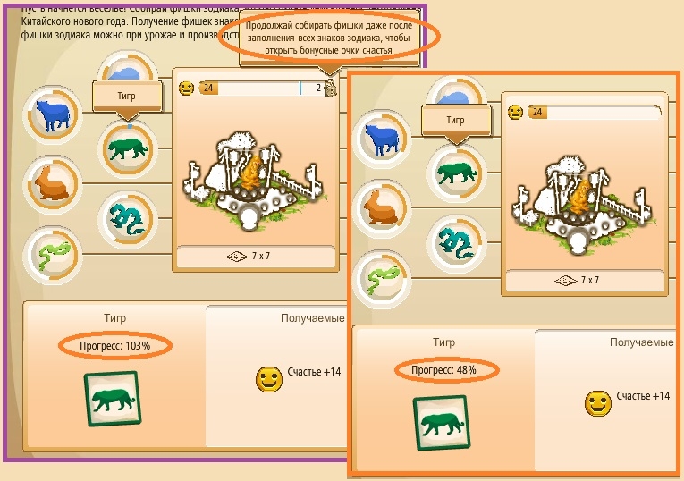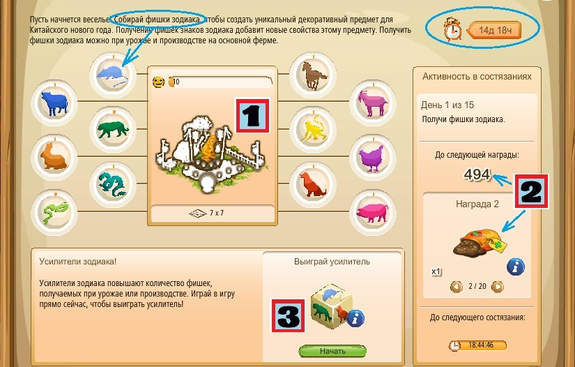Собираем фишки знаков зодиака, которые вылетают с объектов Главной фермы при сборе урожаев.